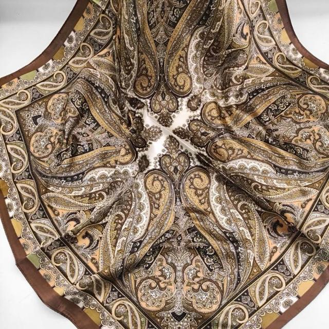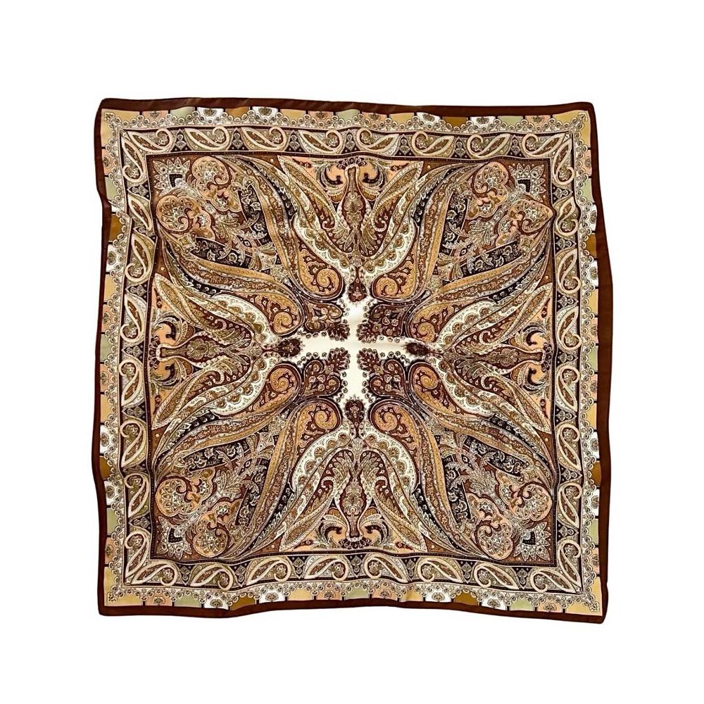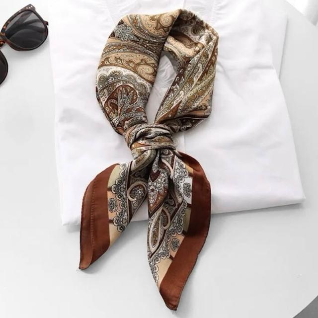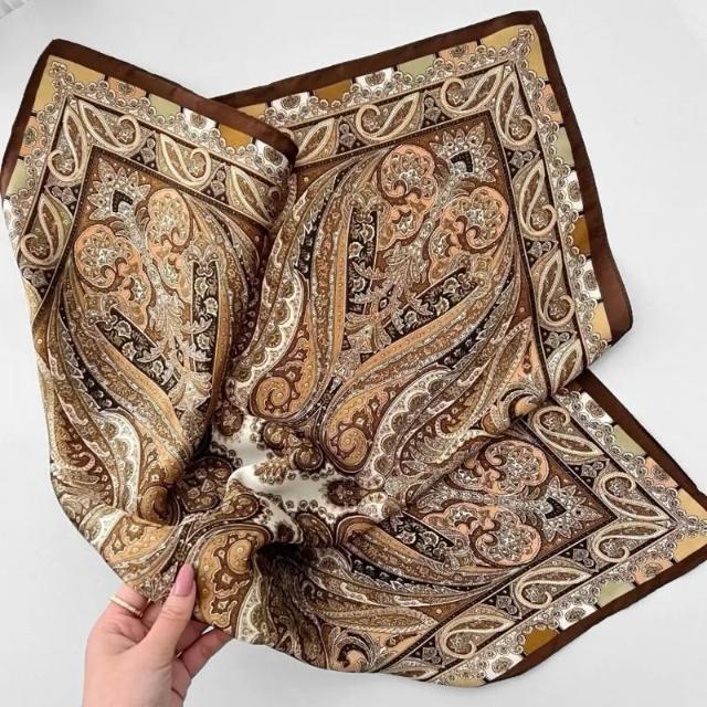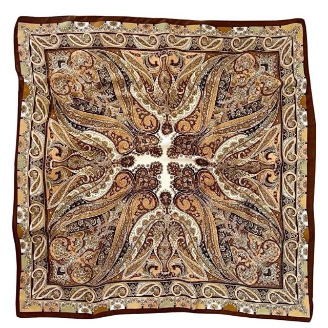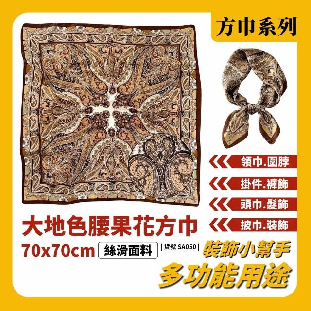 現貨 大地色系腰果花方巾 拼接 方巾 絲巾 頭巾 簡約 質感 領巾 髮帶 包巾 脖圍 飾品