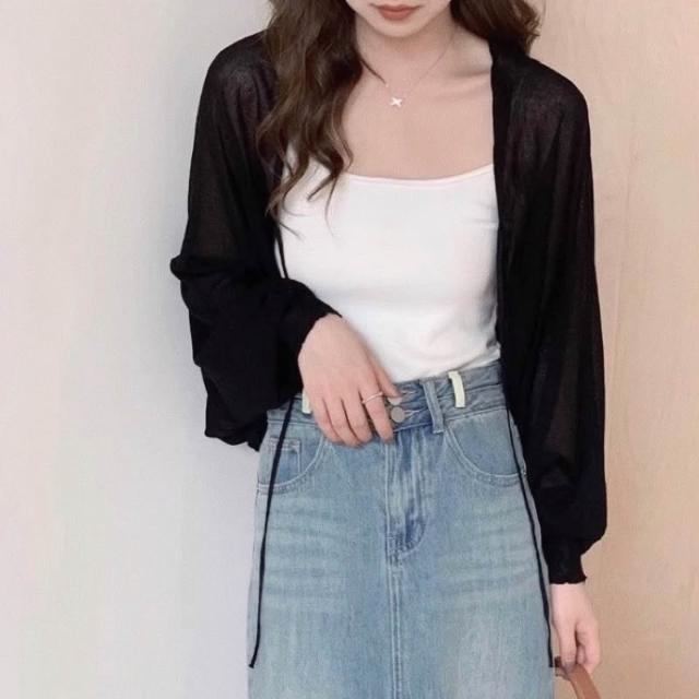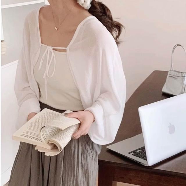 現貨 3色 綁帶薄罩衫 短版 外套 透紗 網紗 罩衫