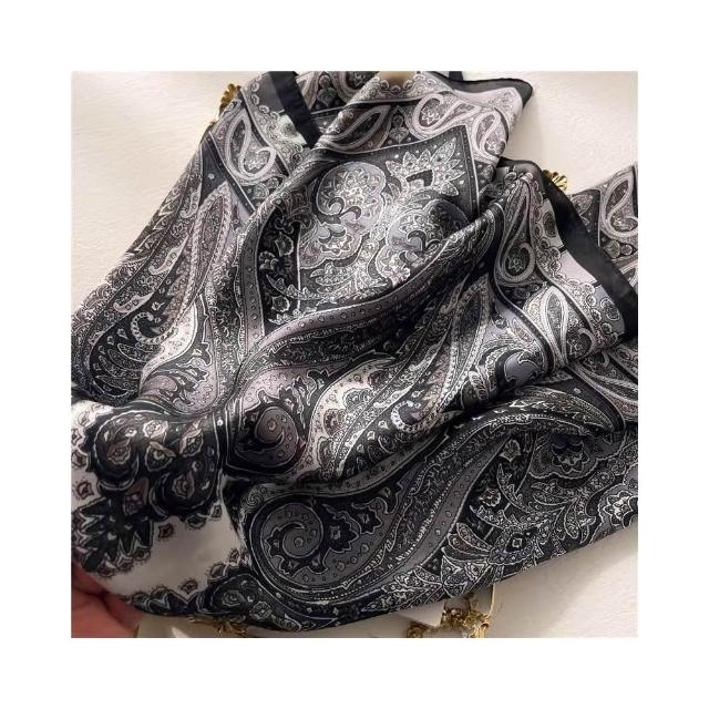 現貨 莫蘭迪 腰果花 方巾 絲巾 頭巾 花紋 簡約 復古 佩斯利 質感 領巾 貴婦 高級 髮帶 脖圍 SA063