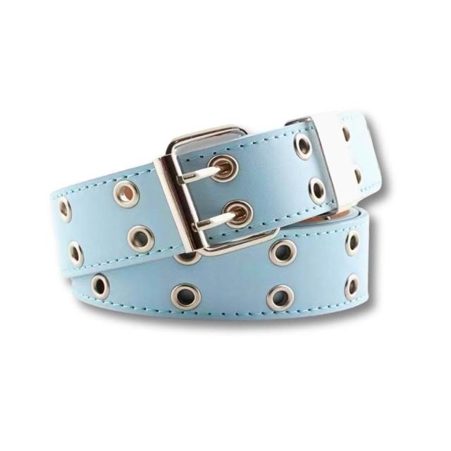 現貨 皮帶 鉚釘 腰帶 男生皮帶 7色 個性 搖滾 腰帶 女生皮帶 雙排打孔 男生皮帶 Y2K 王嘉爾 SBE006