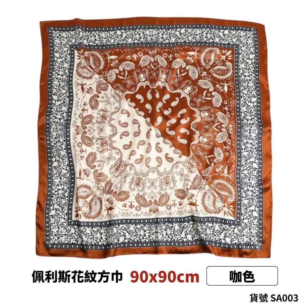 絲巾 方巾 肚兜 大方巾 小方巾 現貨 10色 佩斯利 腰果花 變形蟲 頭巾 領巾 花紋 絲緞 髮帶 披肩 SA003