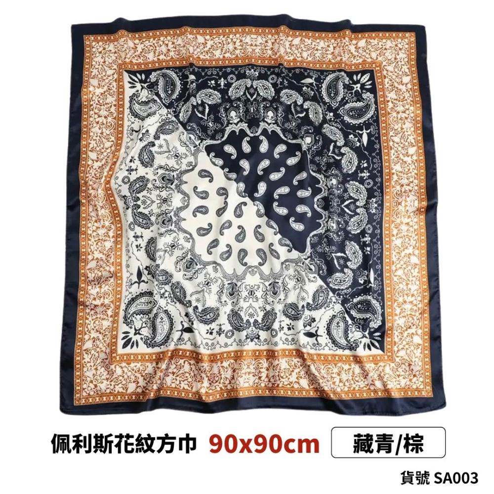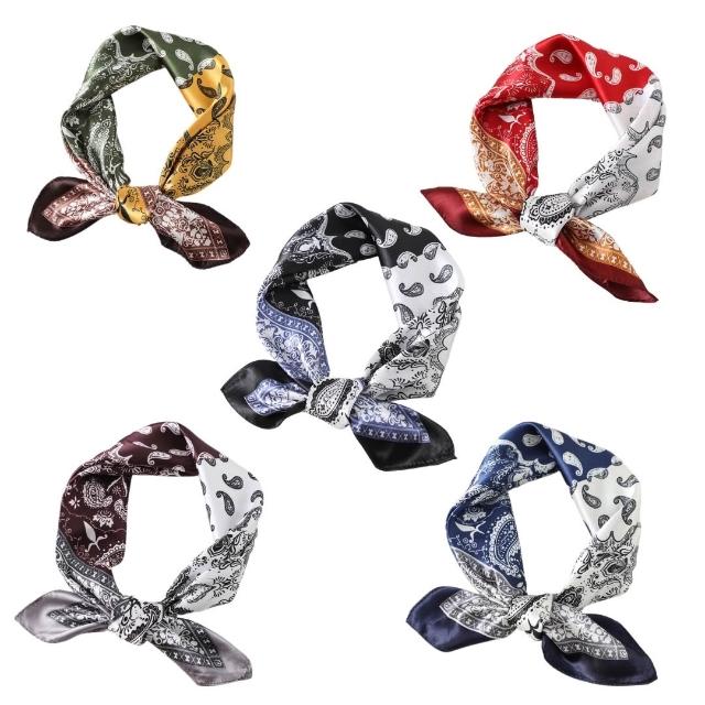 絲巾 方巾 肚兜 大方巾 小方巾 現貨 10色 佩斯利 腰果花 變形蟲 頭巾 領巾 花紋 絲緞 髮帶 披肩 SA003