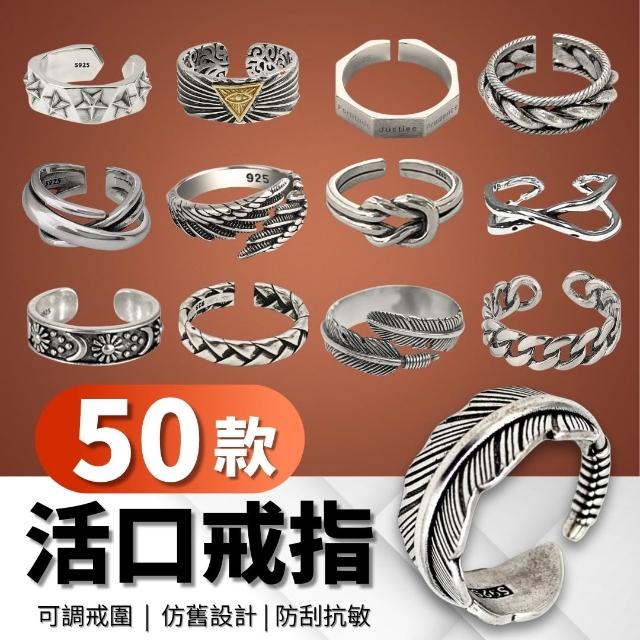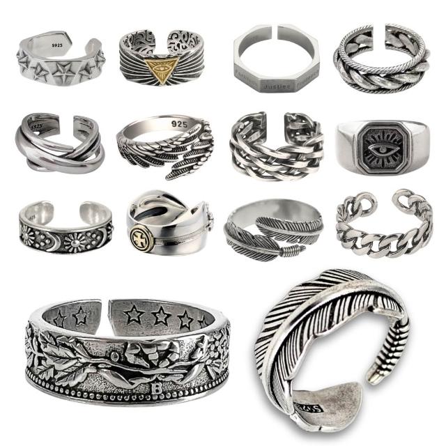 50款 純銀戒指 男生戒指 開口戒 尾戒 對戒 抗氧化 男戒 仿舊 S925 銀戒 情侶戒指 925銀 SR-50FJ
