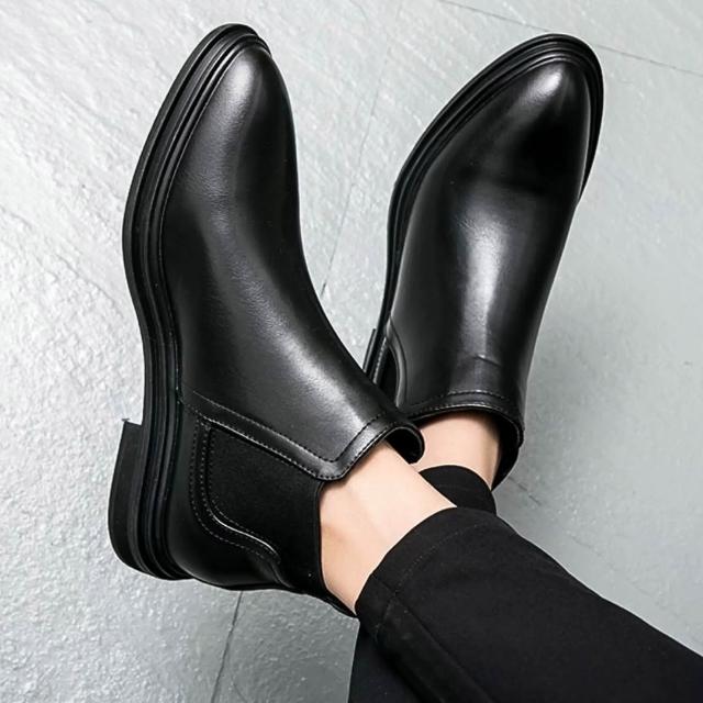 不合可退換 切爾西靴 男靴 男短靴 尖頭 現貨實拍 尖頭靴 靴子 皮鞋 黑 25-29cm 男生皮鞋 男鞋 SS004