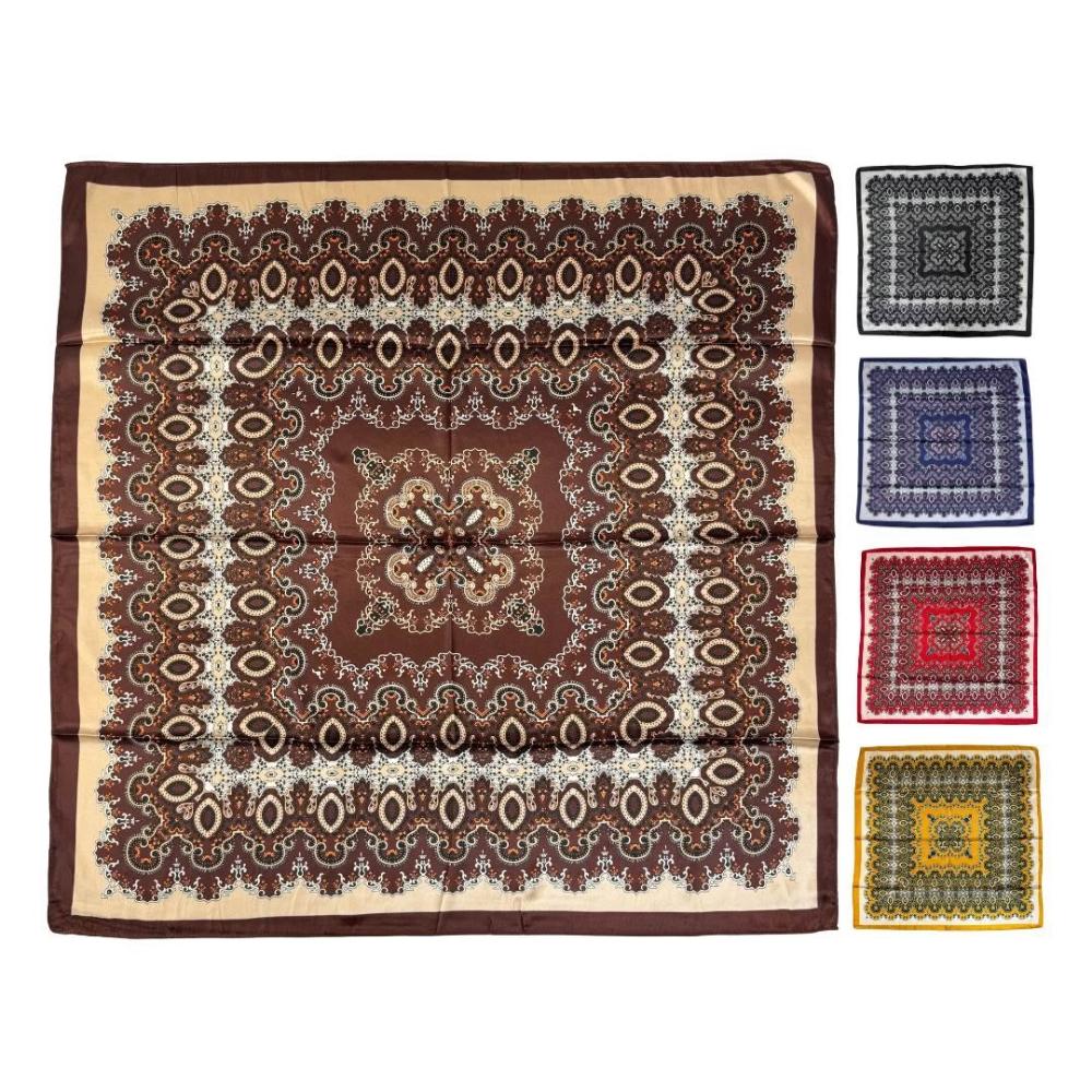 佩斯利花紋 腰果花 絲巾 方巾 現貨 5色 邊框印花 平口上衣 頭巾 領巾 圖騰 綁巾 黑白 高質感 粉色 SA066