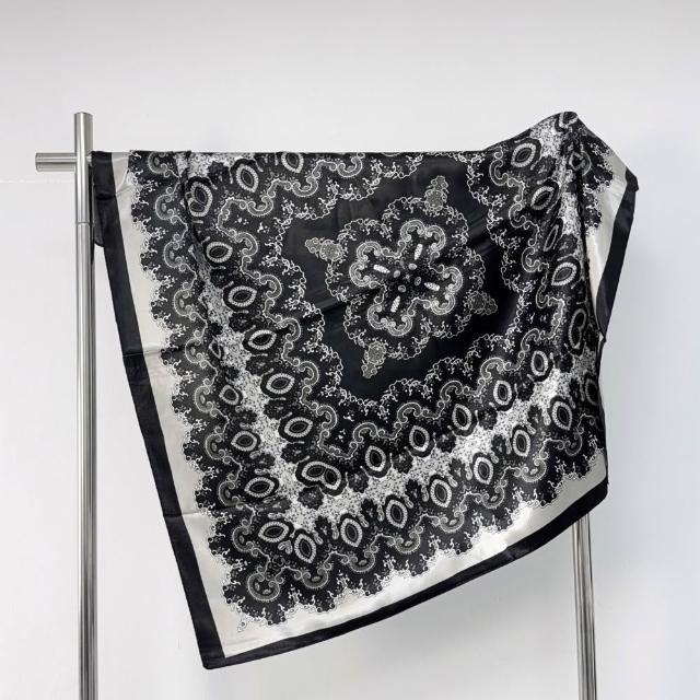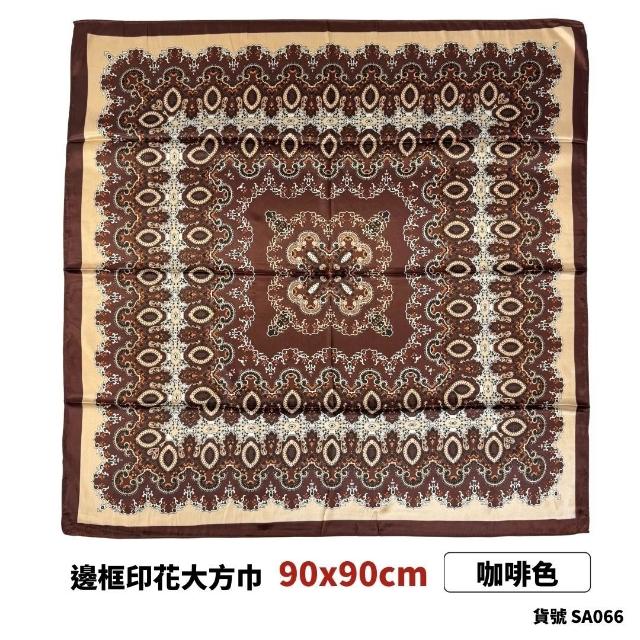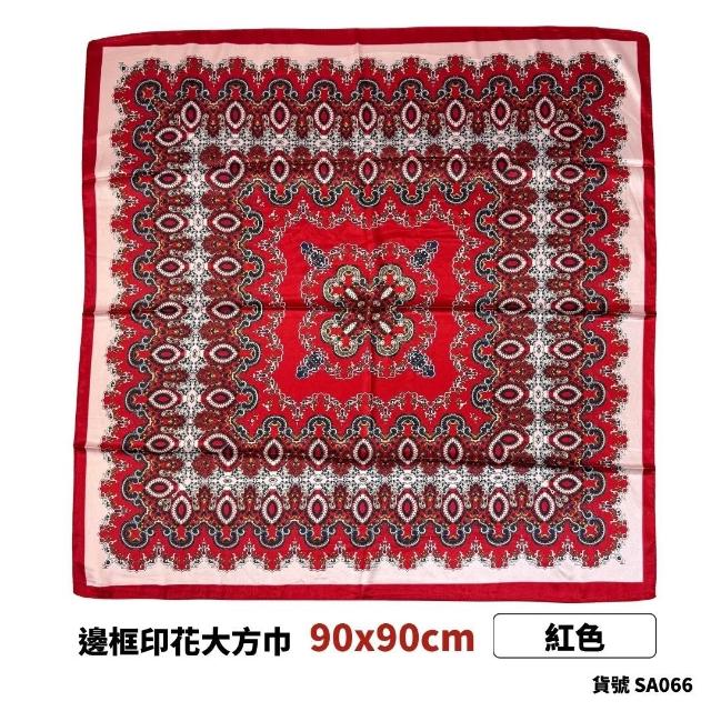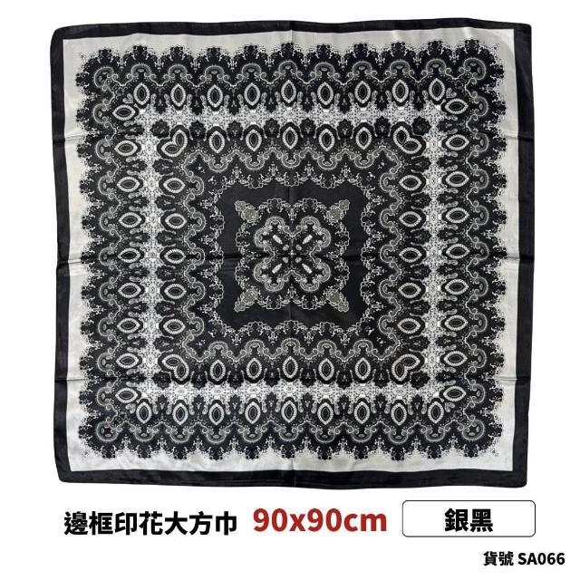佩斯利花紋 腰果花 絲巾 方巾 現貨 5色 邊框印花 平口上衣 頭巾 領巾 圖騰 綁巾 黑白 高質感 粉色 SA066