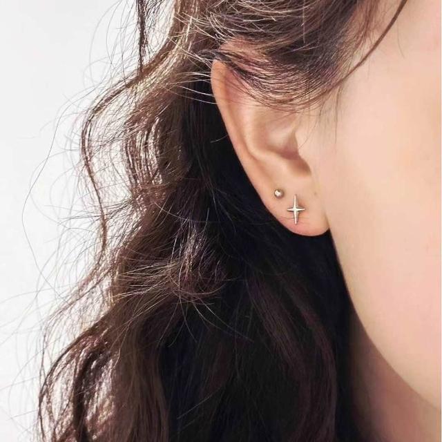 十字 星芒 耳環 四芒星 星星 伯利恆之星 耳釘 耳針 耳飾 現貨 簡約 素面 百搭 中性 情侶 街頭 龐克 SE125