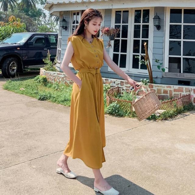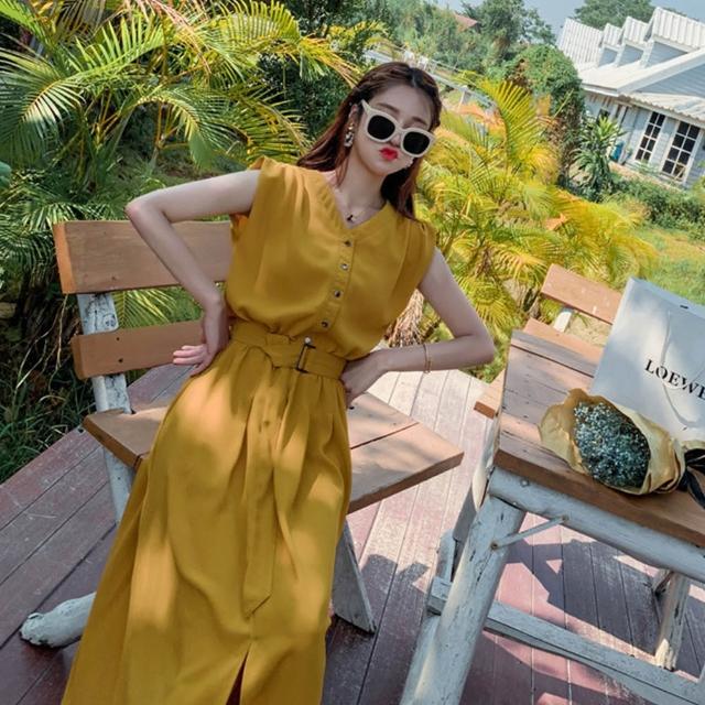 - 附腰帶連身長裙