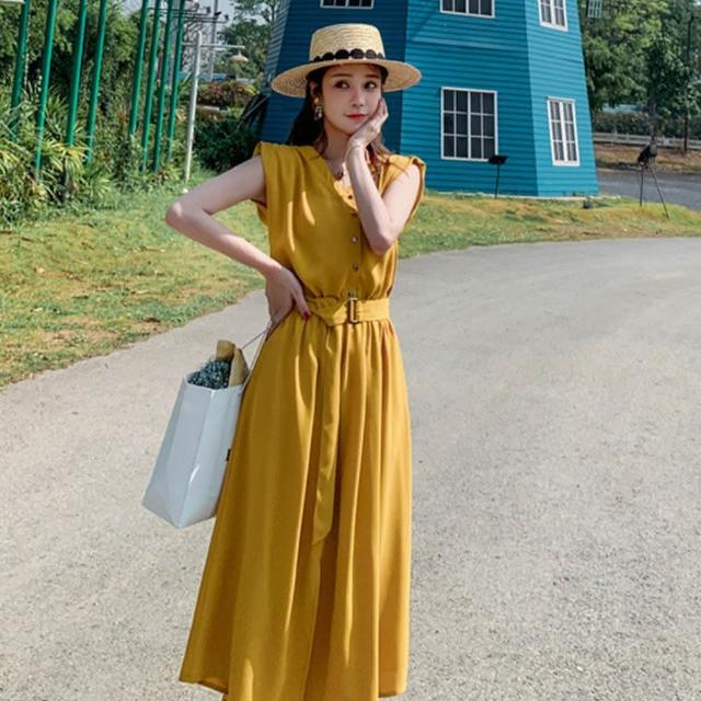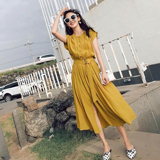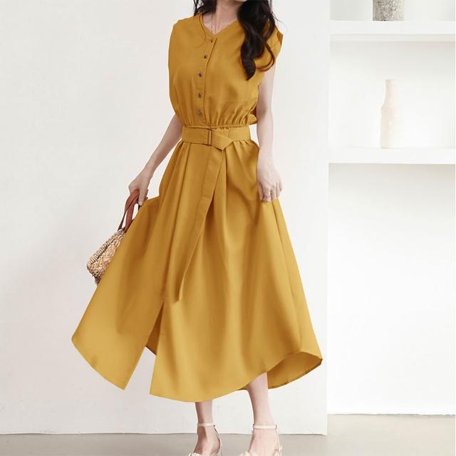 - 附腰帶連身長裙
