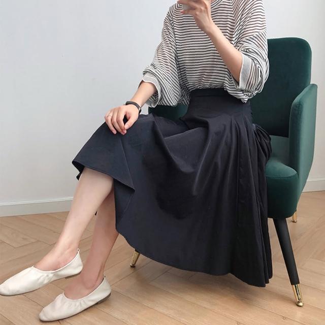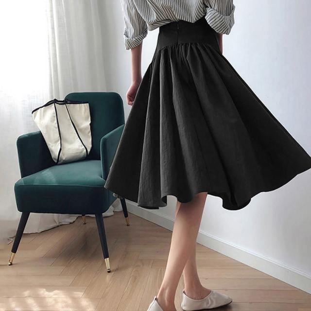 那木圓弧大擺收腰挺闊長裙半身裙(高腰大圓擺洋裝連衣裙)