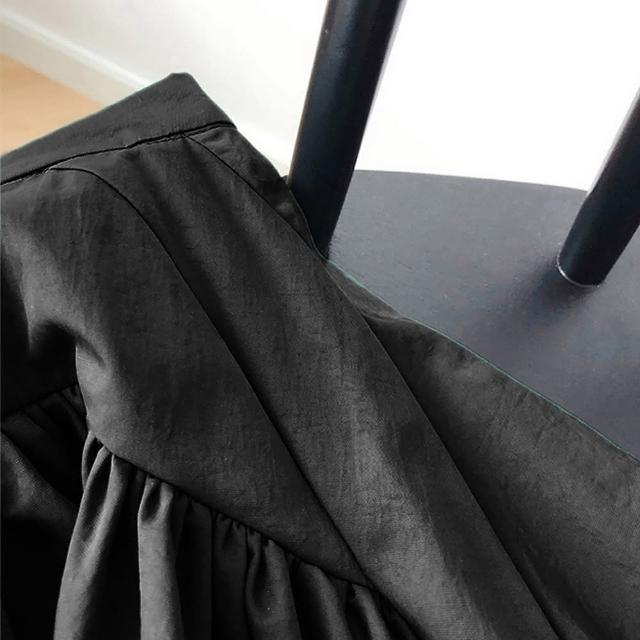 - 圓弧拼接打褶裙擺很顯腰細