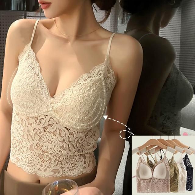 良池法式彈力蕾絲胸墊細肩帶小可愛上衣(無鋼圈百搭V領內搭修身抹胸外穿吊帶)