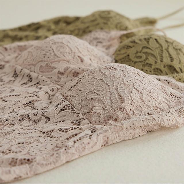 良池法式彈力蕾絲胸墊細肩帶小可愛上衣(無鋼圈百搭V領內搭修身抹胸外穿吊帶)