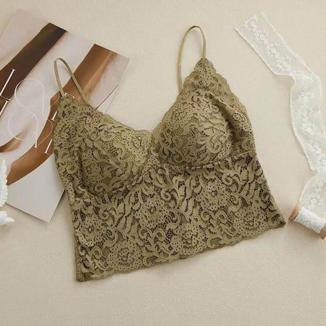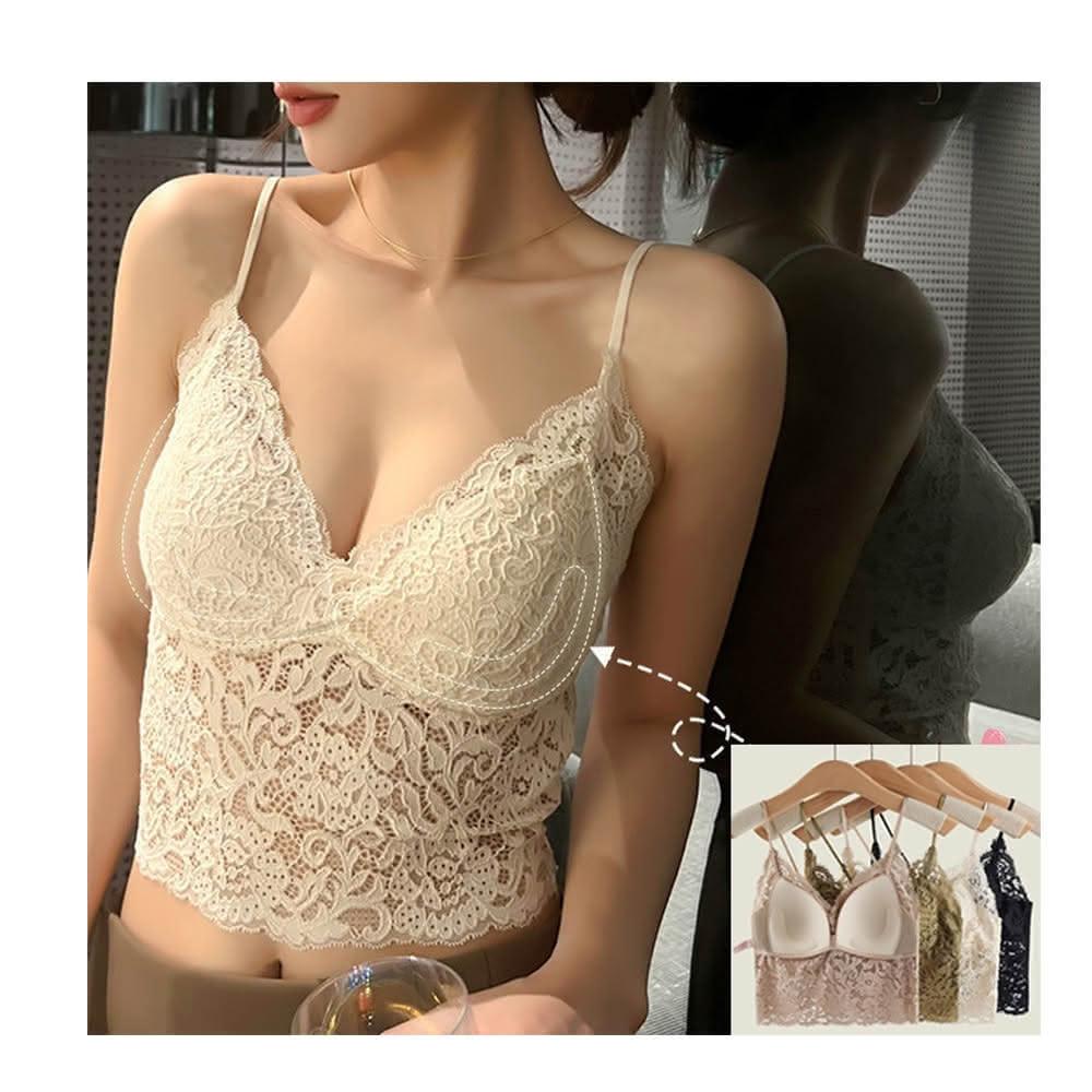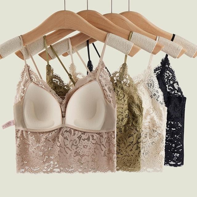 良池法式彈力蕾絲胸墊細肩帶小可愛上衣(無鋼圈百搭V領內搭修身抹胸外穿吊帶)