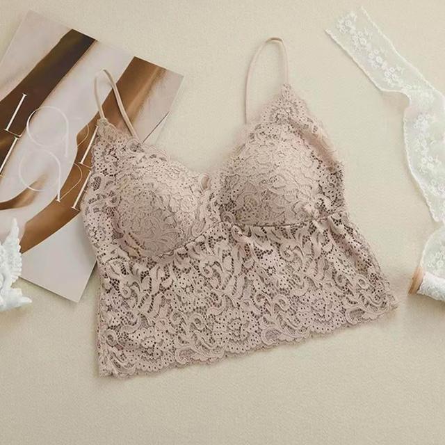 良池法式彈力蕾絲胸墊細肩帶小可愛上衣(無鋼圈百搭V領內搭修身抹胸外穿吊帶)