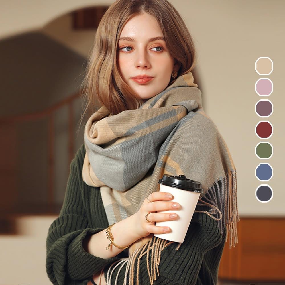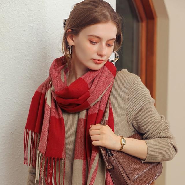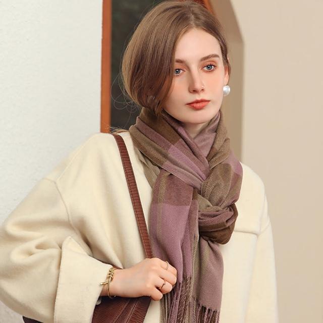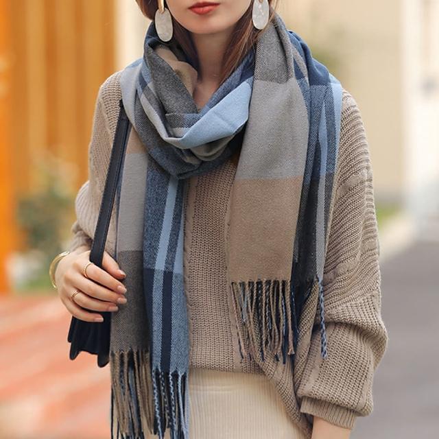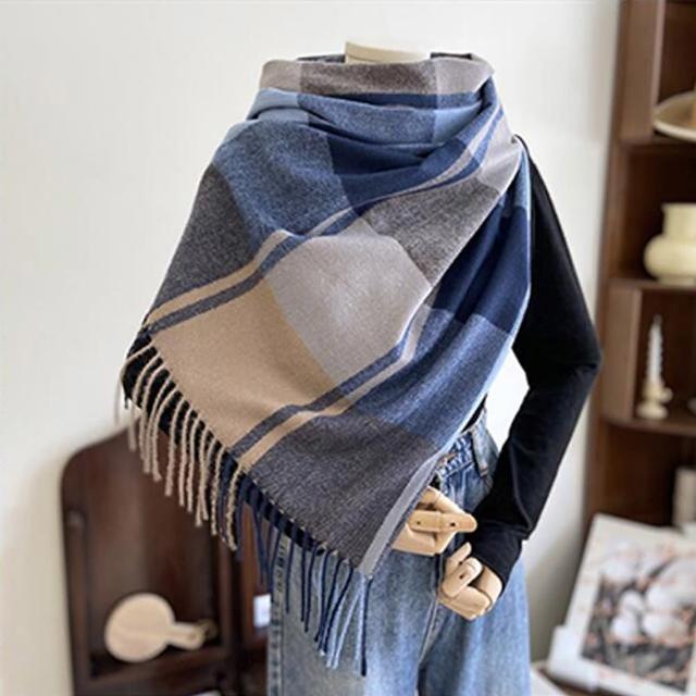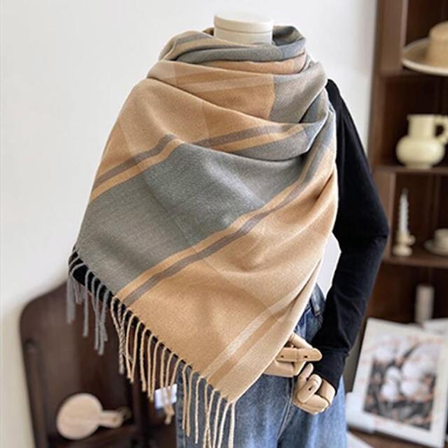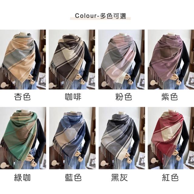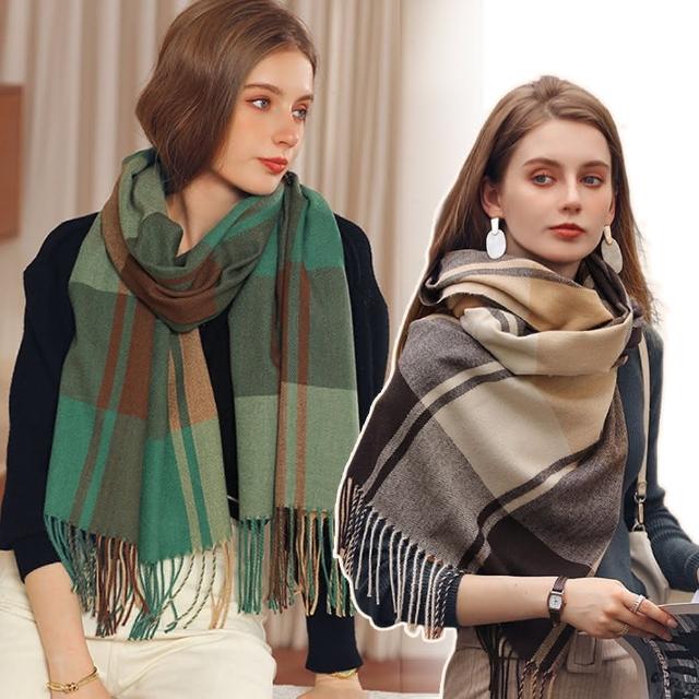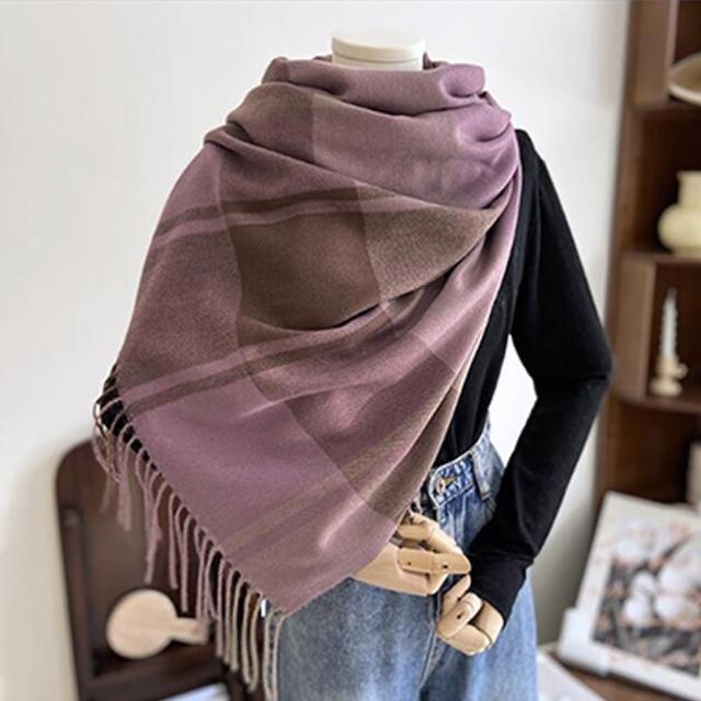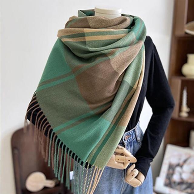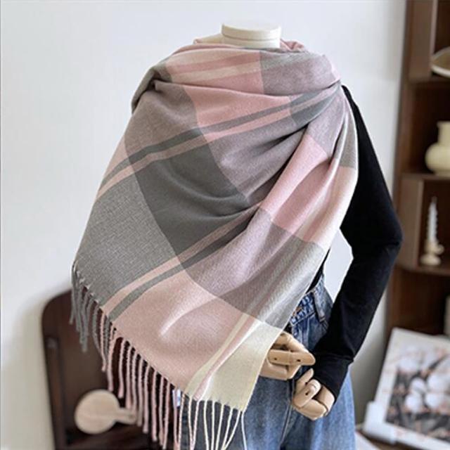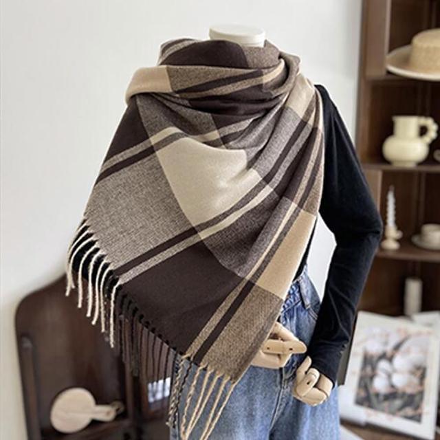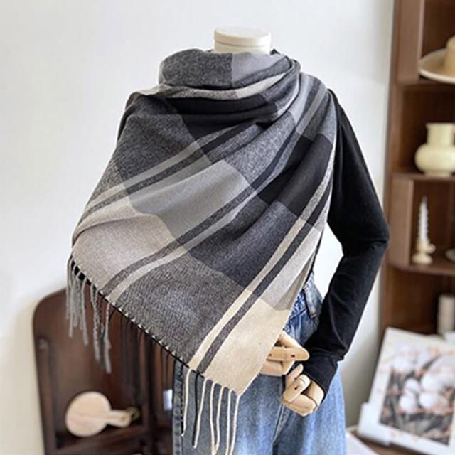 良池大格紋仿羊絨保暖磨毛披肩圍巾
