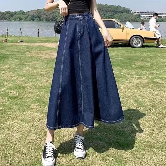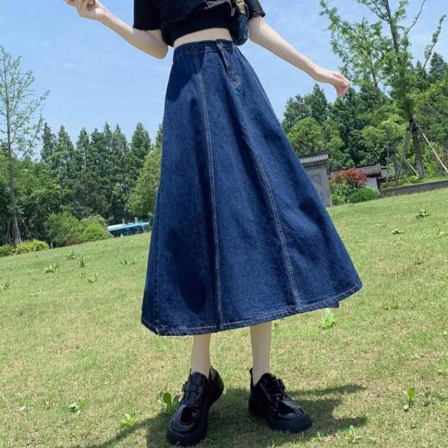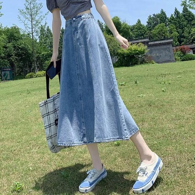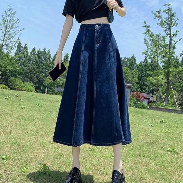良池百搭顯瘦牛仔裙 A字半身裙長裙(2色)