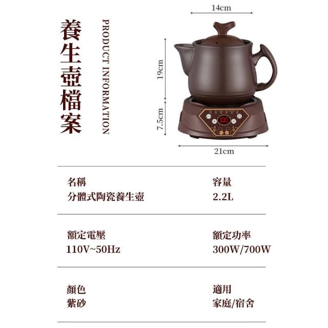tounichi 東日3L分體式養生壺 全自動煎藥壺 陶瓷內膽 多功能燉煮壺YH-FT700