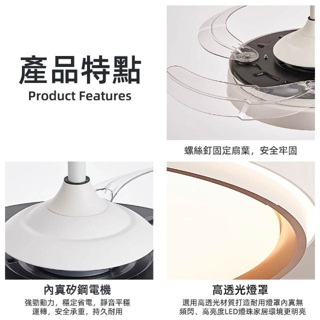 tounichi 東日48吋現代簡約隱形吊扇燈家用客廳餐廳電扇吊燈變頻120W/靜音定時/六檔大風力