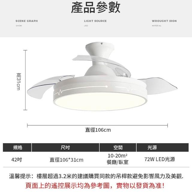 tounichi 東日(限量特惠)42吋吊扇燈隱形風扇燈客廳吸頂燈led吊燈智慧變頻循環扇電風扇六檔調速/定時靜音/正反轉