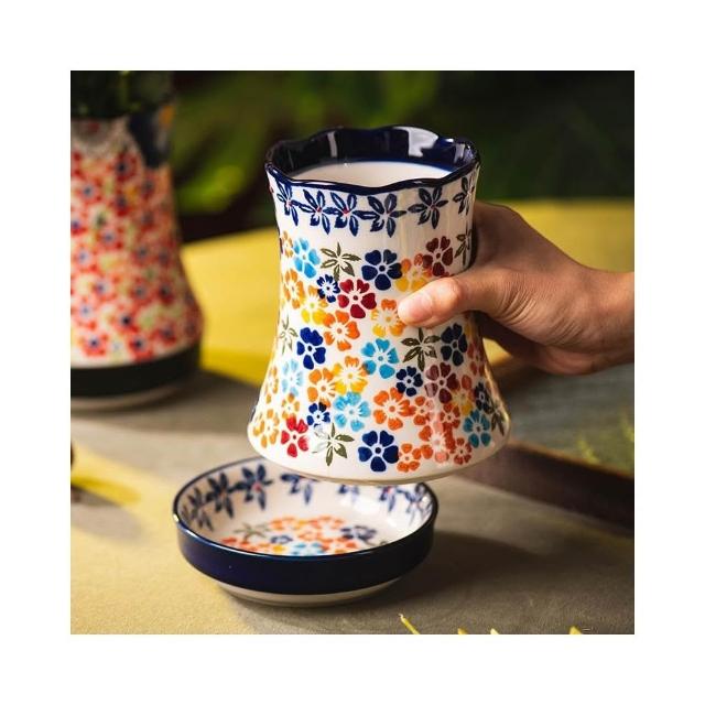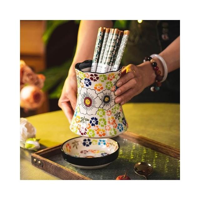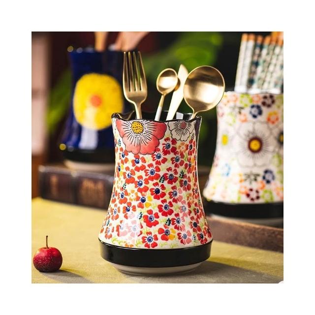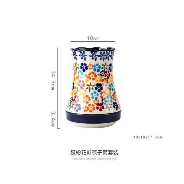 tounichi 東日家用陶瓷筷子手繪 廚房筷桶刀叉收納盒 多彩花瓶(瀝水/手繪)