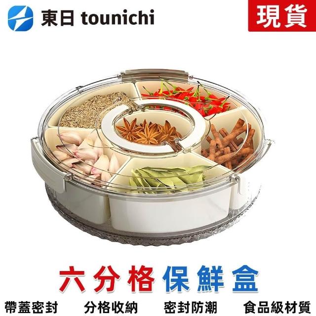 tounichi 東日六分格旋轉水果盤帶提手 密封防潮乾果盤 可擕式家用圓形帶蓋零食盒