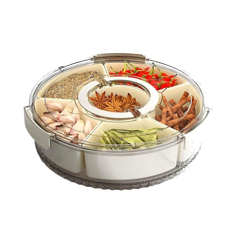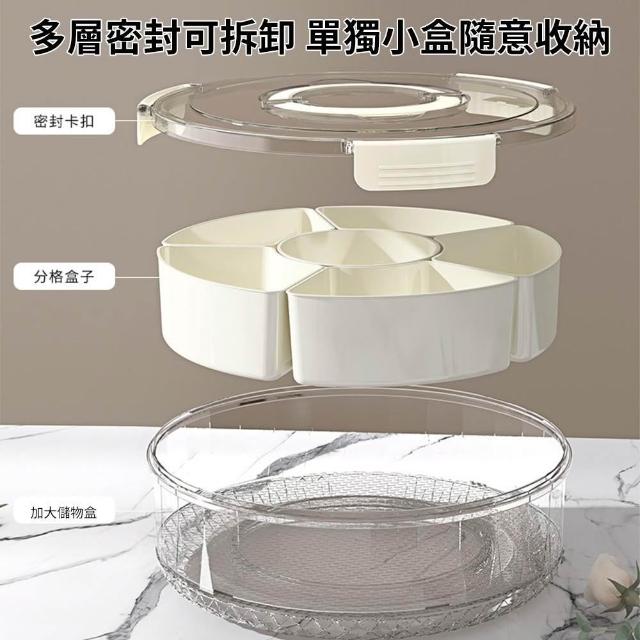 tounichi 東日六分格旋轉水果盤帶提手 密封防潮乾果盤 可擕式家用圓形帶蓋零食盒