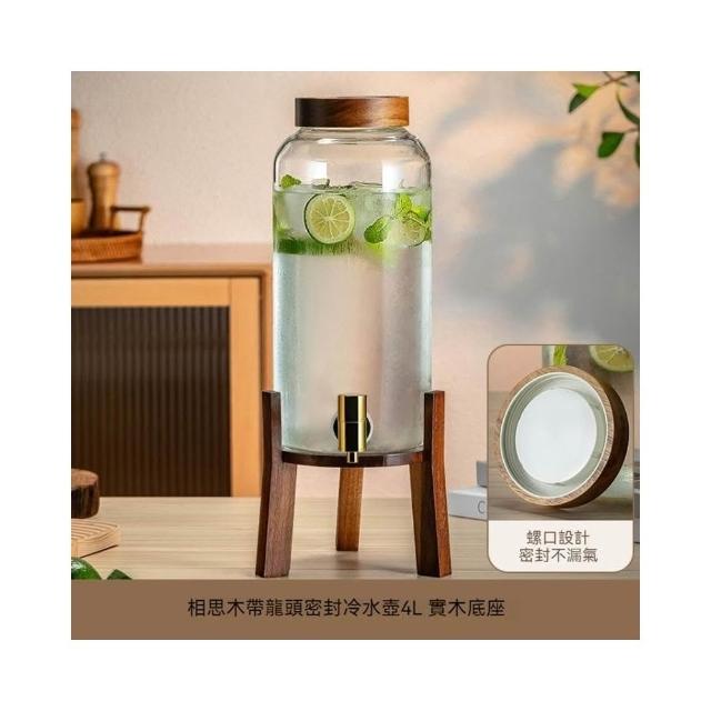 tounichi 東日冷水壺帶龍頭 耐高溫玻璃 家用儲水瓶 水果茶冷泡飲料桶 帶底座 商用擺件