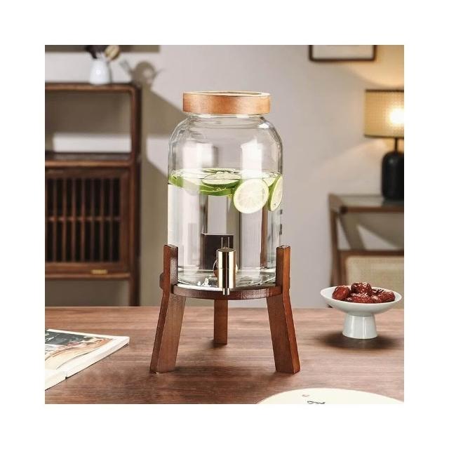 tounichi 東日冷水壺帶龍頭 耐高溫玻璃 家用儲水瓶 水果茶冷泡飲料桶 帶底座 商用擺件