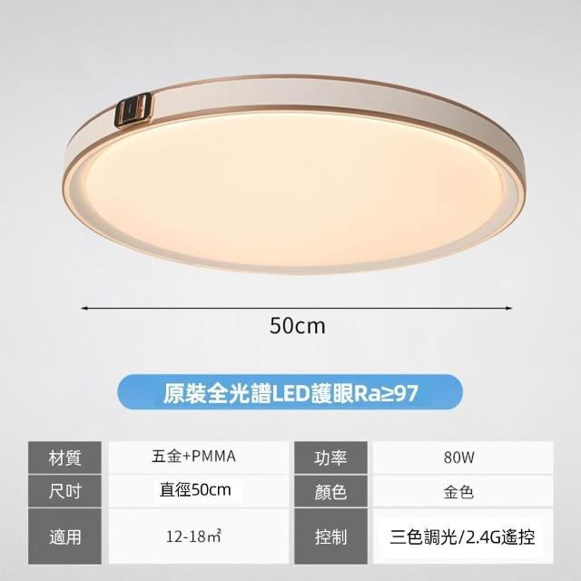 tounichi 東日(限時特惠)【臺灣現貨】輕奢圓形吸頂燈 全光譜護眼 三色變光 80W高亮度 臥室餐廳燈具