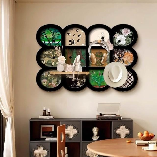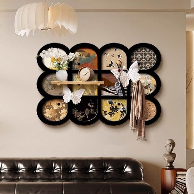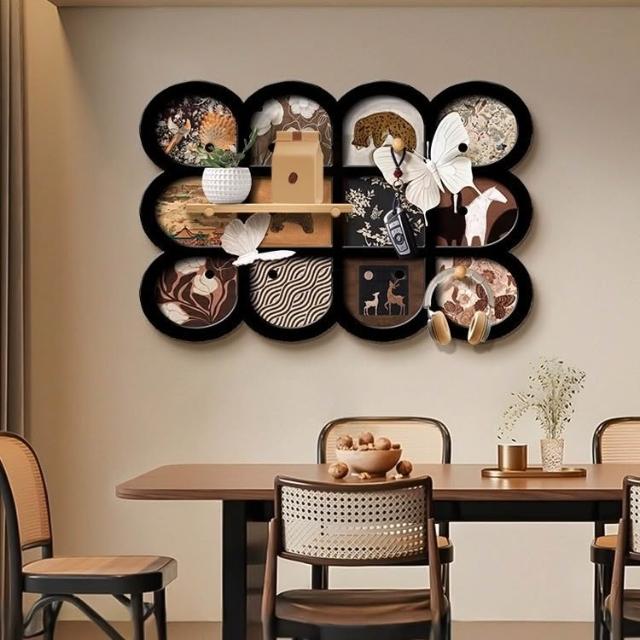 tounichi 東日法式復古餐廳掛畫 中古風背景牆裝飾 飯廳收納架 多功能置物架