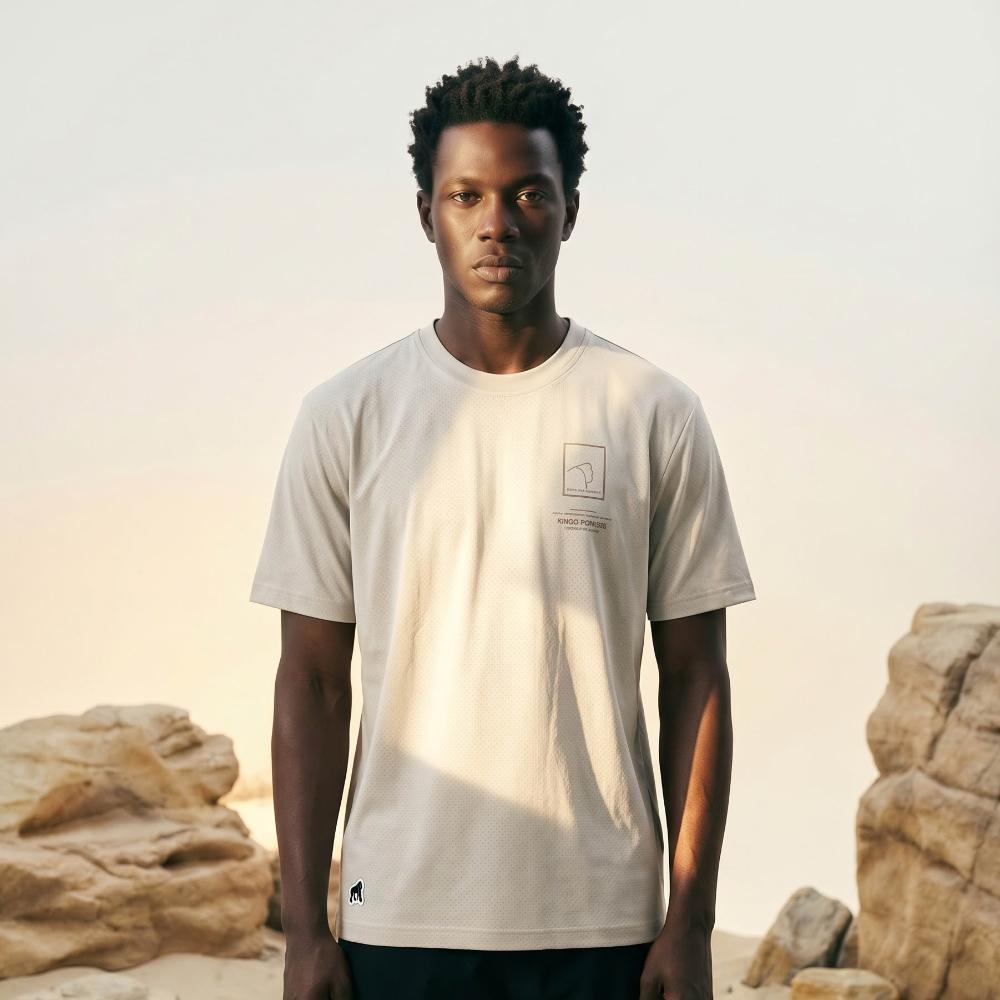 KINGO男款|淺卡其印花短袖T恤 上衣/運動/休閒/台灣製 611611