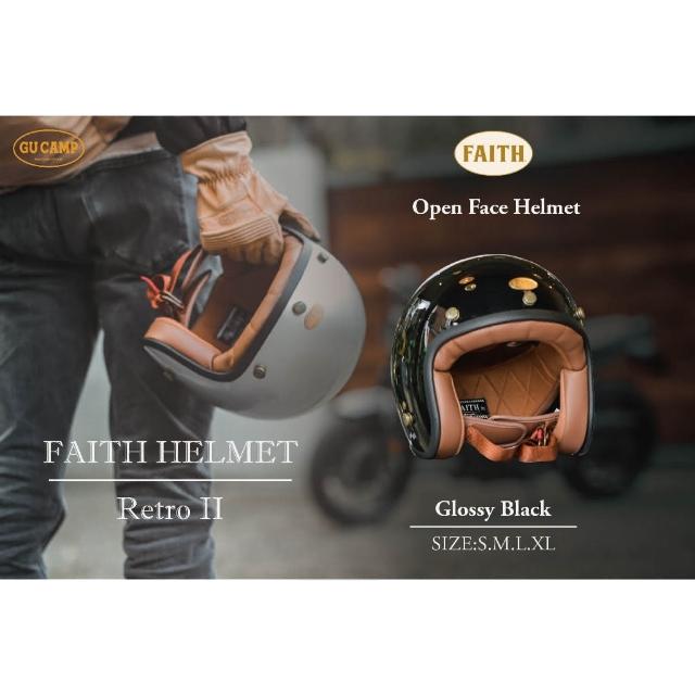 GU CAMP騎士部品(現貨)免運優惠 Faith Retro II 復古 小帽體 3/4 安全帽 faith 經典黑