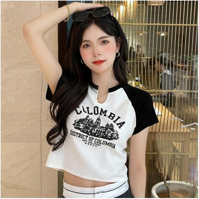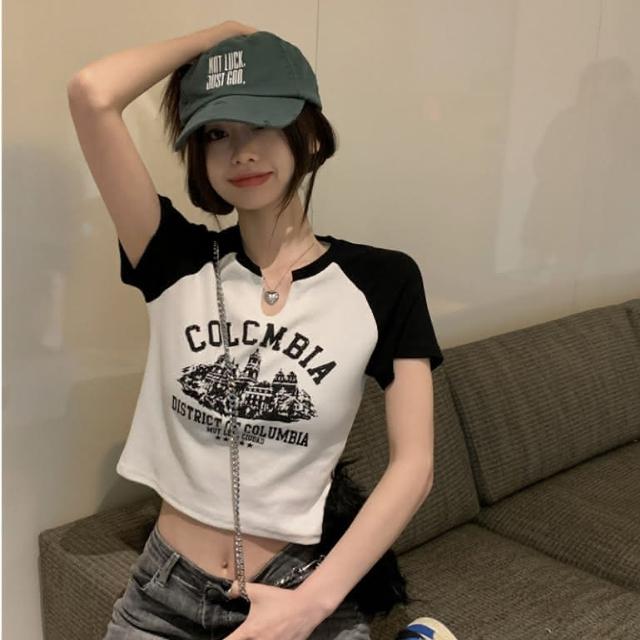 韓版素色百搭小v設計短版上衣 短版上衣 短版t恤 v領上衣 短袖上衣 短袖t恤 女裝 顯瘦上衣 衣服 素T 短板上衣