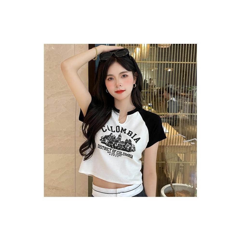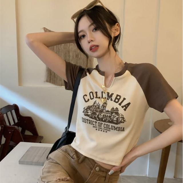 韓版素色百搭小v設計短版上衣 短版上衣 短版t恤 v領上衣 短袖上衣 短袖t恤 女裝 顯瘦上衣 衣服 素T 短板上衣