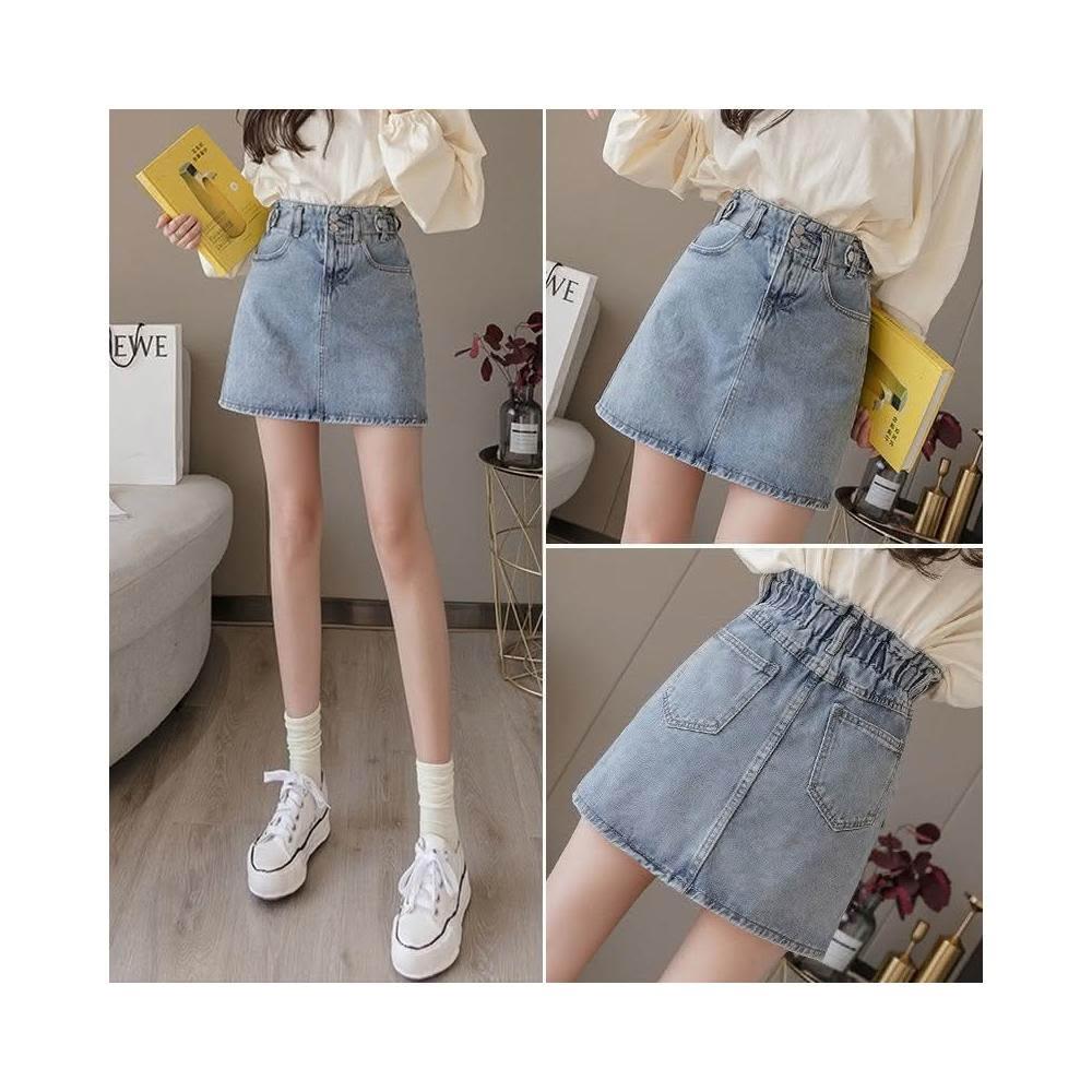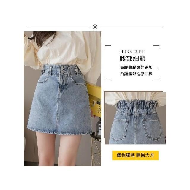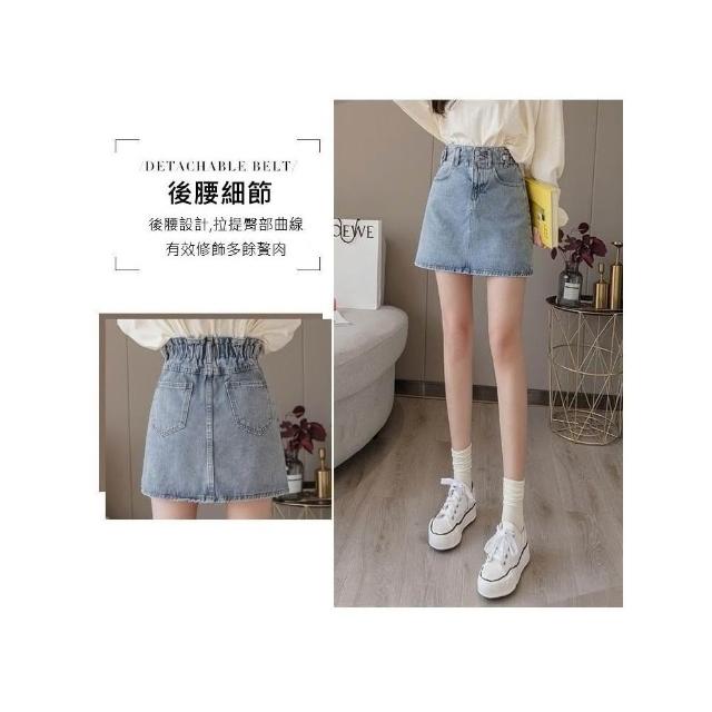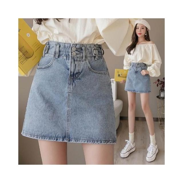 現貨韓版寬鬆百搭A字牛仔裙 腰部彈性 半身裙 休閒褲 短褲短裙 褲子 女裝 包臀裙 短裙 A字裙 裙子 短裙