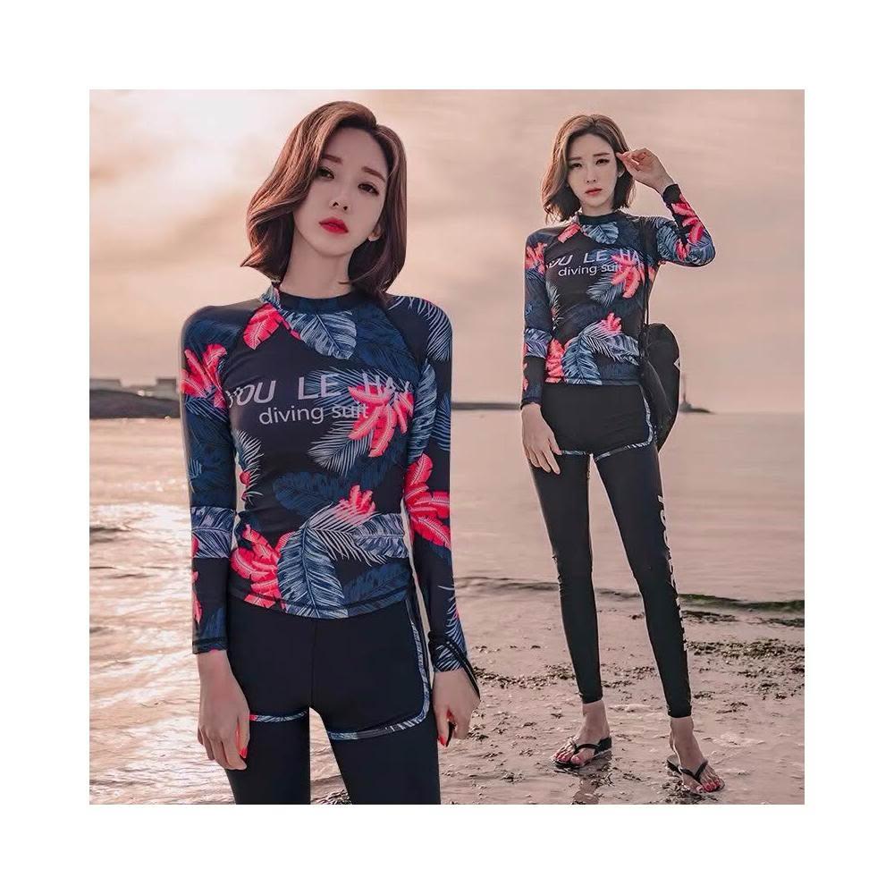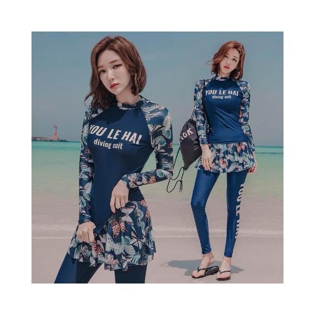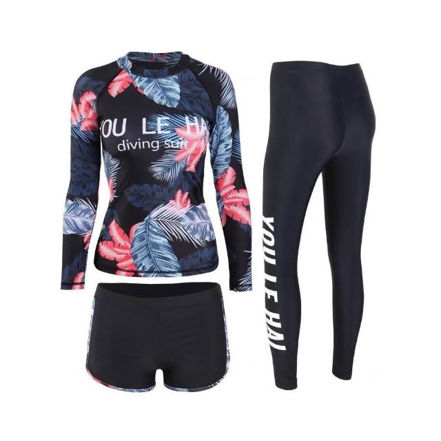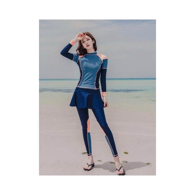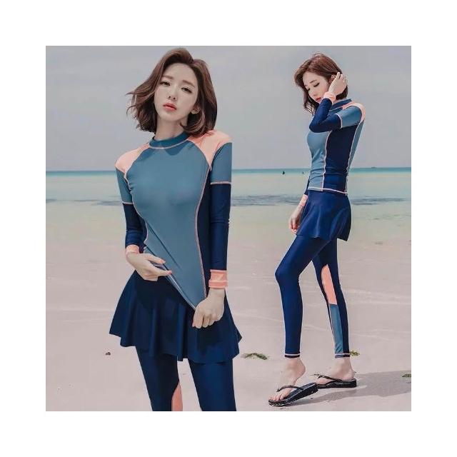 現貨臺灣寄出速乾防曬長袖泳衣 水母衣 浮潛泳裝 潛水衣 沙灘泳衣裙式 修身顯瘦 衝浪衣 溫泉泳衣 三件組泳衣
