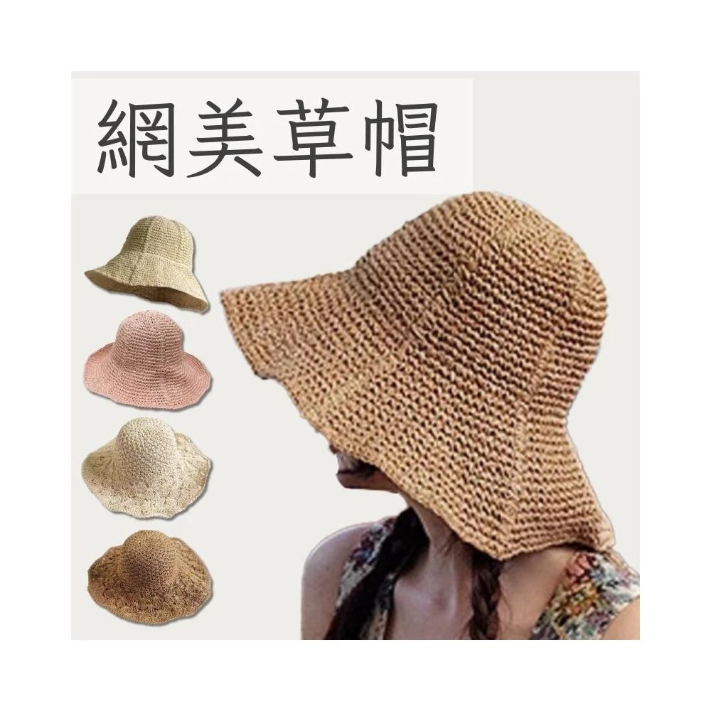 夏天出游 百搭編織帽 防曬大帽沿草帽 韓版遮陽帽子 沙灘帽 漁夫帽 遮陽帽 防曬帽 可折叠易攜帶 編織草帽 魚夫帽抗UV