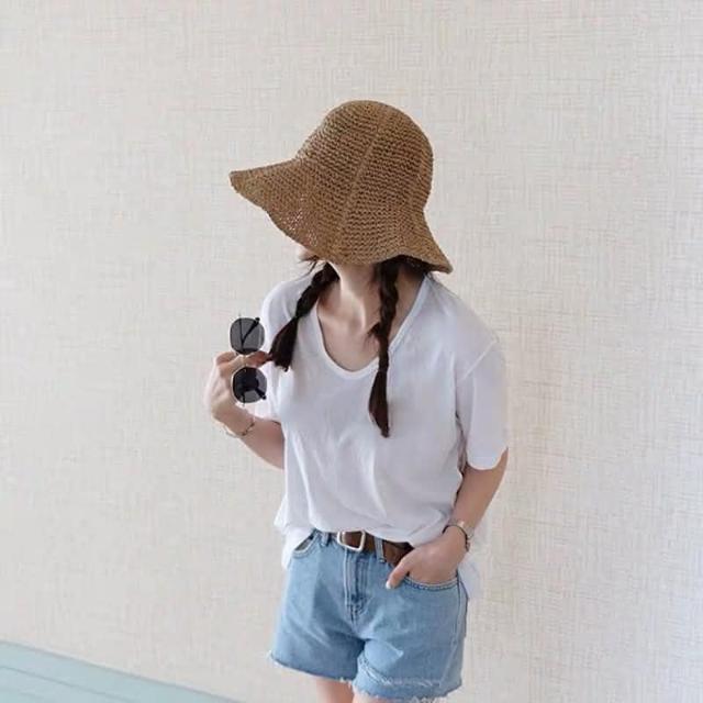 夏天出游 百搭編織帽 防曬大帽沿草帽 韓版遮陽帽子 沙灘帽 漁夫帽 遮陽帽 防曬帽 可折叠易攜帶 編織草帽 魚夫帽抗UV