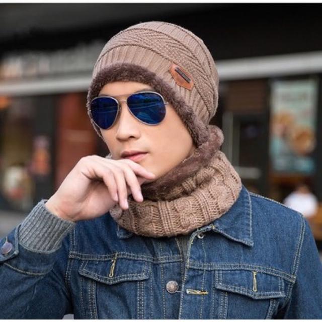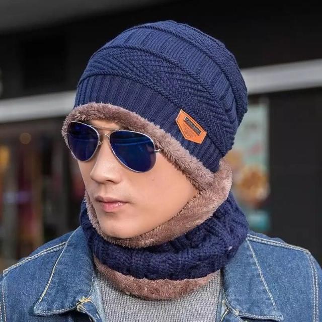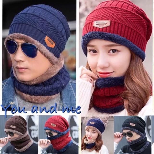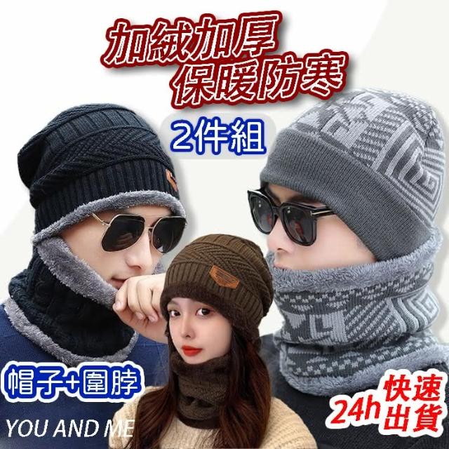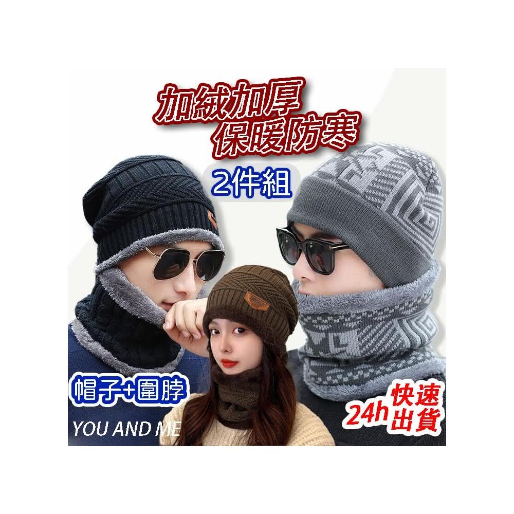 台灣寄出韓版 加絨加厚毛帽 兩件組 圍脖 男女可戴 針織毛線帽 針織帽 加絨加厚帽子+圍脖兩件組 毛線帽子 保暖帽