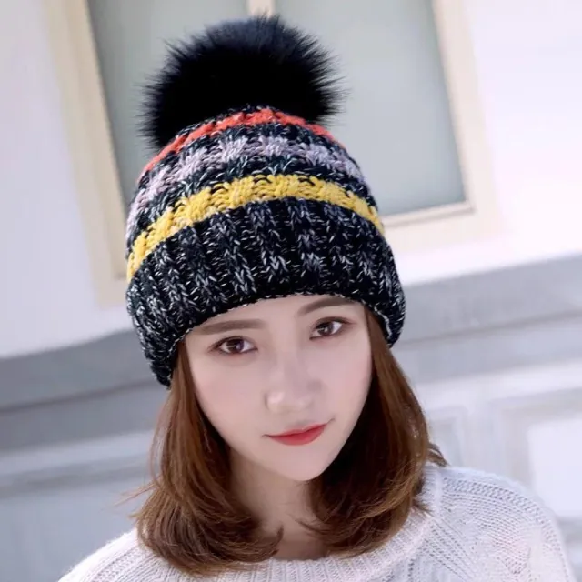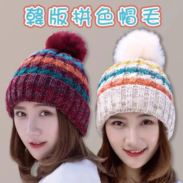 現貨台灣發貨韓版卷邊拼色毛線帽毛帽加絨保暖毛線針織帽子