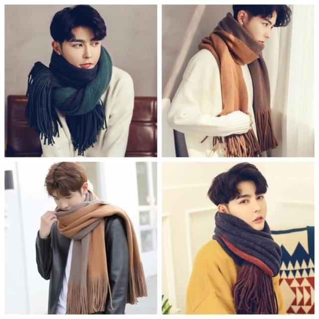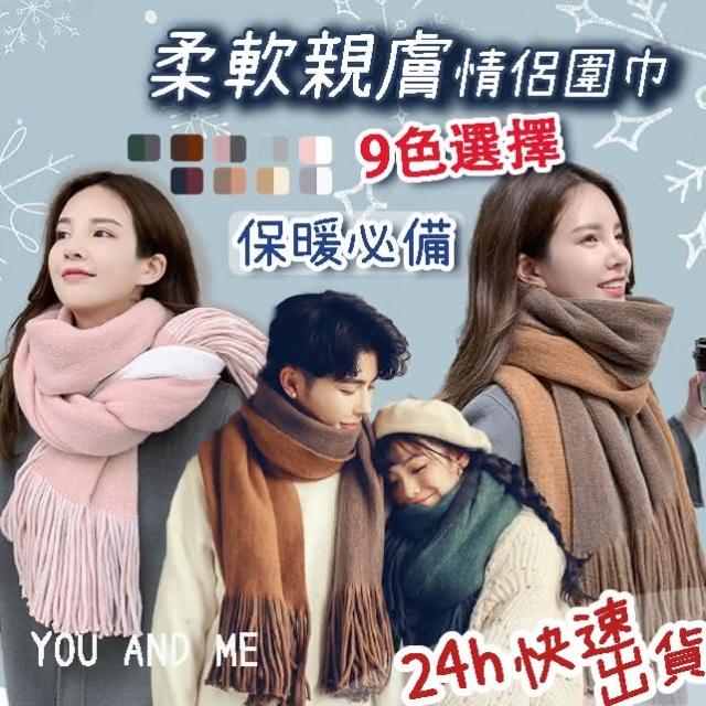 現貨臺灣寄出雙色圍巾 保暖 男女中性款 韓版百搭仿羊絨男學生圍巾 情侶圍脖 情侶圍巾 男生圍巾 毛線加厚 針織圍巾