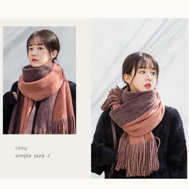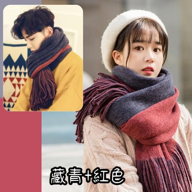 現貨臺灣寄出雙色圍巾 保暖 男女中性款 韓版百搭仿羊絨男學生圍巾 情侶圍脖 情侶圍巾 男生圍巾 毛線加厚 針織圍巾