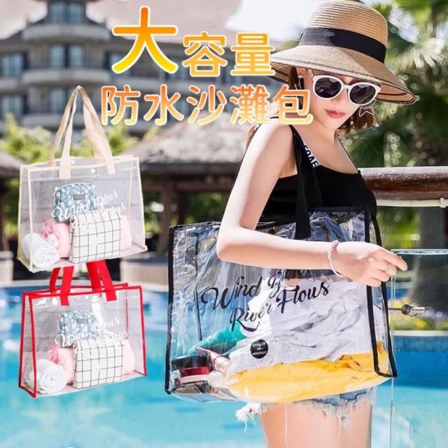 現貨新款沙灘袋 夏日防水大容量透明單肩沙灘包 乾濕分離包 洗漱包 旅行袋 旅行包 透明包 海灘包
