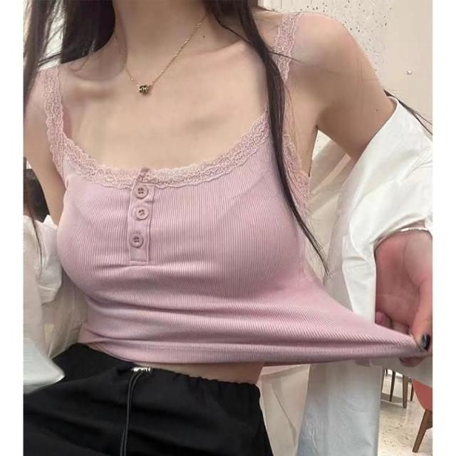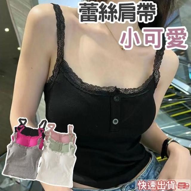 台灣現貨 蕾絲吊帶小背心 可單穿 百搭內衣 含胸墊吊帶背心 外穿背心胸墊內衣 小吊帶背心 女內搭衣 夏季薄款上衣 可外穿