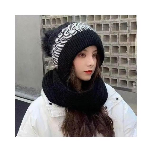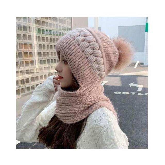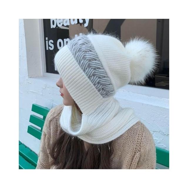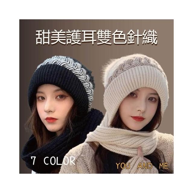 秋冬季新款 帽子圍巾一體帽 甜美護耳雙色針織 保暖百搭 加絨加厚毛帽 圍巾帽子一體帽 加厚加絨保暖加倍 兩件套帽子