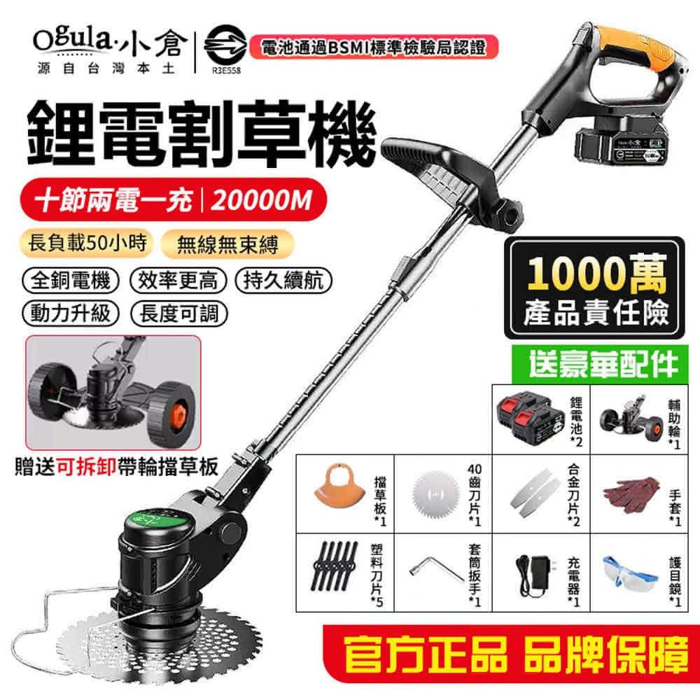 Ogula 小倉割草機 除草機 家用款大功率20000M兩電送大禮包(認證BSMI:R3E558/充電式鋰電打草機)