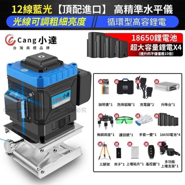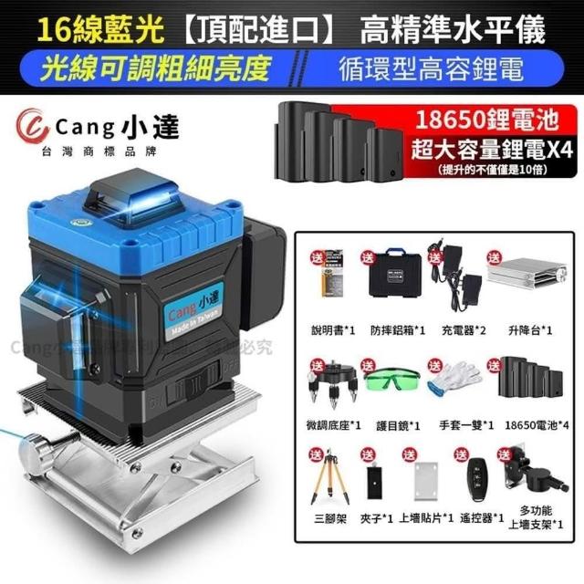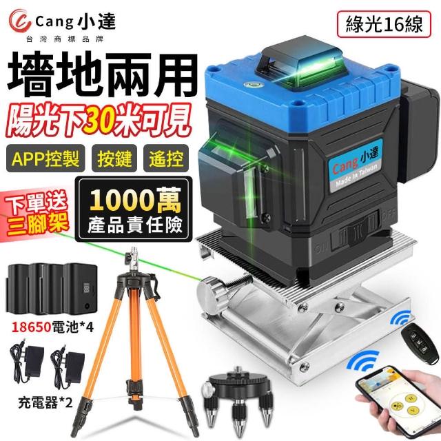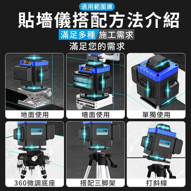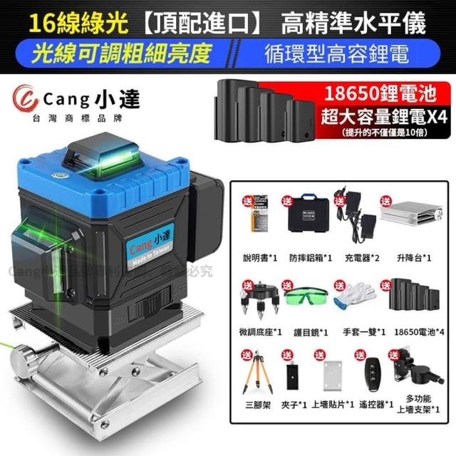小達水平儀 雷射水平儀(16線綠光電池*4+支架)觸控戶外超強 自動調平 打斜線水平儀