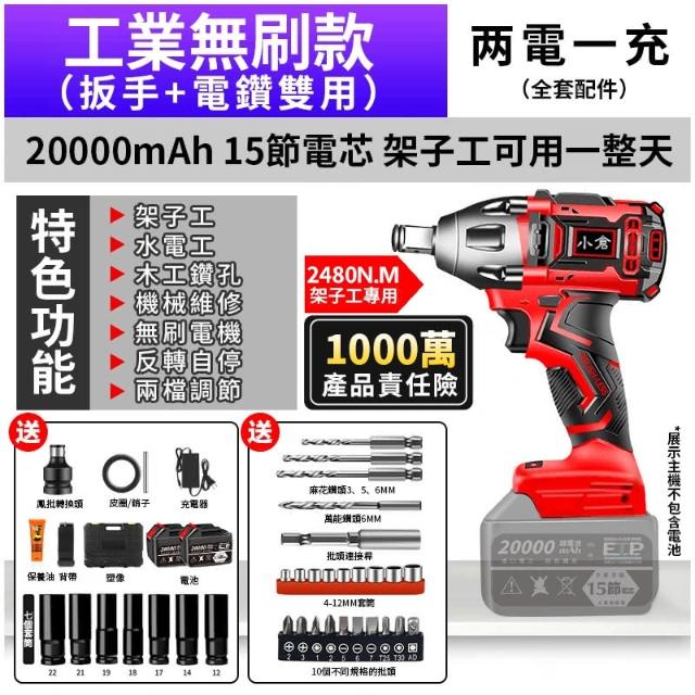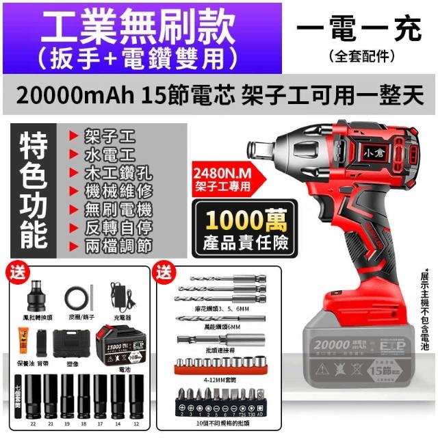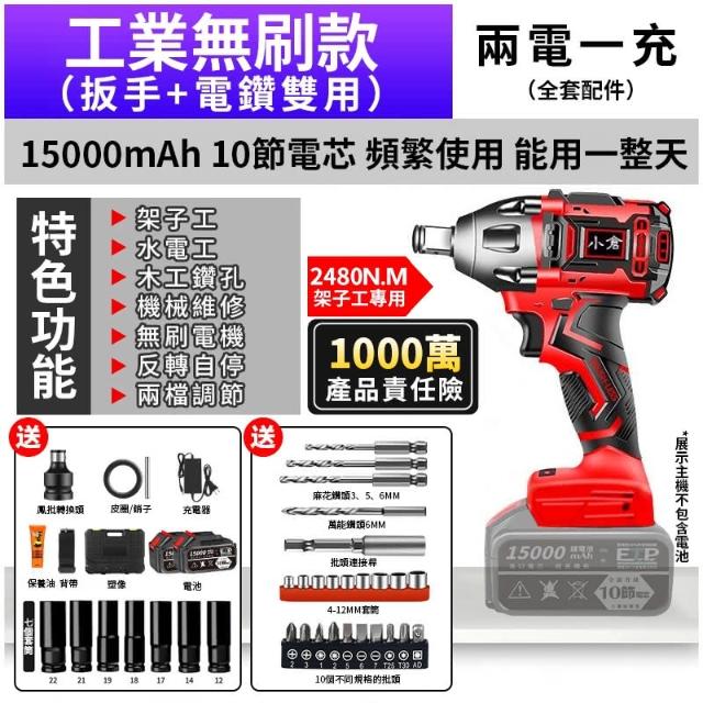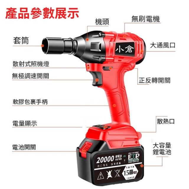 - 鋰電無刷扳手功能 銅芯電機