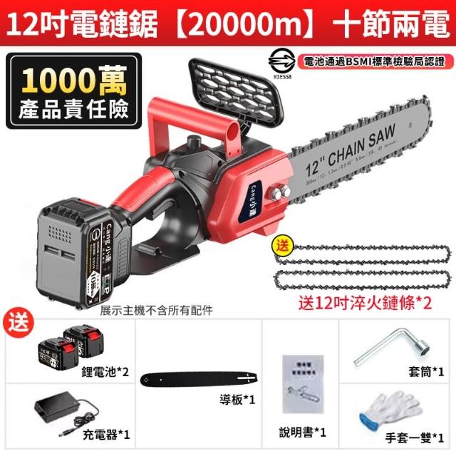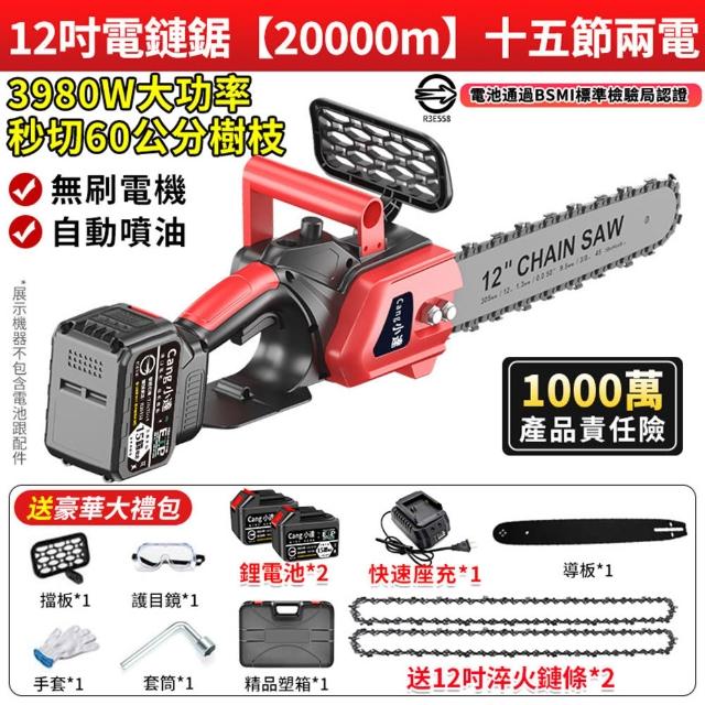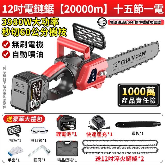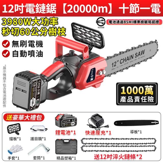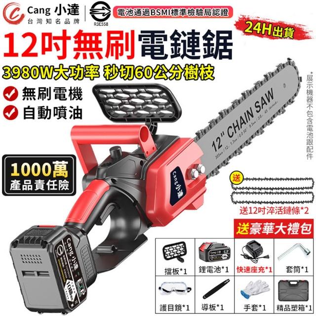 小達鏈鋸機 無刷12吋電鏈鋸 3980W大功率電動鋸子 自帶油壺 鋰電鋸子 伐木鋸 電池認證:R3E558